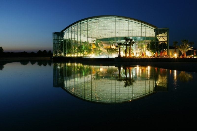 Nicht nur Sebastian Kneipp wusste die Heilkraft des Bad Wörishofeners Wassers zu schätzen. Auch noch heute schwören zahlreiche Heilpraktiker und Fachärzte der bayrischen Kleinstadt auf die gesunde Wirkung der Thermalquellen. Doch wenn man die Therme Bad Wörishofen betritt, fühlt man sich nicht wie in Bayern, sondern eher wie in der Südsee. Denn zahlreiche Palmen entlang der großzügigen Beckenlandschaft versprühen ein exotisches Flair. Die einzigartigen Gesundheitsbecken, die regelmäßig professionell geleitete Kneipp Parcours und die exklusive Saunalandschaft tun Körper und Seele gleichermaßen gut. Das bayerische Heilbad gilt mit seinem sommerlichen Sandstrand, der beliebten Wellnessabteilung und den zahlreichen Entspannungsmöglichkeiten als ein einzigartiger Ort der Ruhe und Erholung. Kinder und Jugendliche unter 16 Jahren dürfen die Therme Bad Wörishofen deshalb lediglich samstags betreten. Denn nur an den Familientagen gilt in dem Heilbad: Gesundes Toben statt entspannende Ruhe.